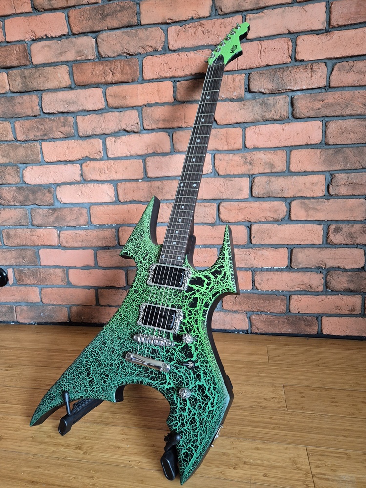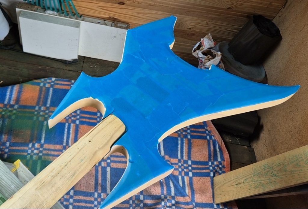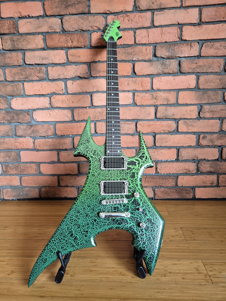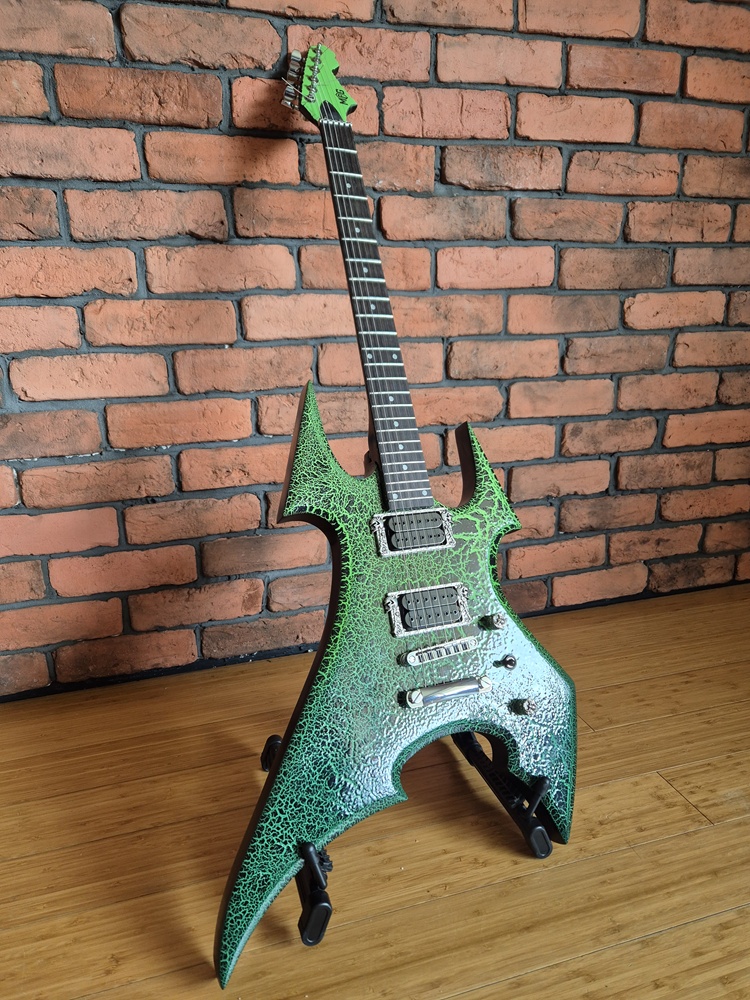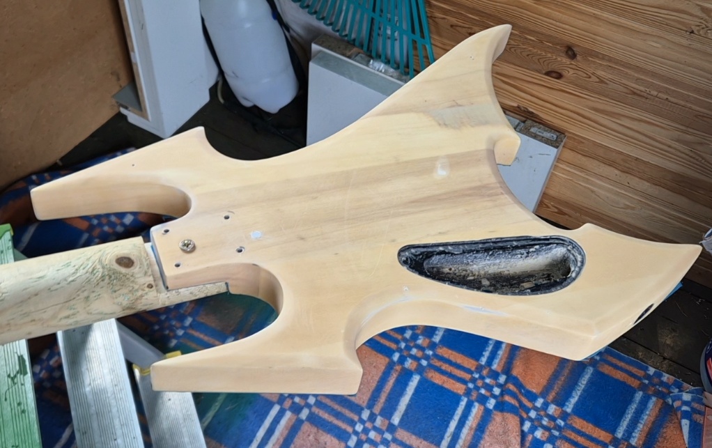 Pewne doświadczenia z projektu ukulele juz miałem. Postanowiłem więc rozejrzeć się za jakims elektrykiem. W głowie wizualizowałem sobie kształt typu les paul. Wybrałem i zamówiłem w sklepie thomann ten produkt https://www.thomann.pl/harley_benton_electric_guitar_kit_lpstyle.htm, ale w tym czasie Harley Benton ogłosił konkurs na jak najlepiej zrobiony projekt z ich zestawów DIY. Brak towaru w magazynie, z dostępność zamiast się skracać to się wydłużała. Poddałem się jak kazali czekać 9-12 tygodni. Zaczałem zatem szukać używanych gitar w okolicy i w rozsądnej cenie. W krótkim czasie trafiłem na ogłoszenie o używanej gitarze „do grania black metalu”. Miał być „full custom”. Kształt? A’la warlock.